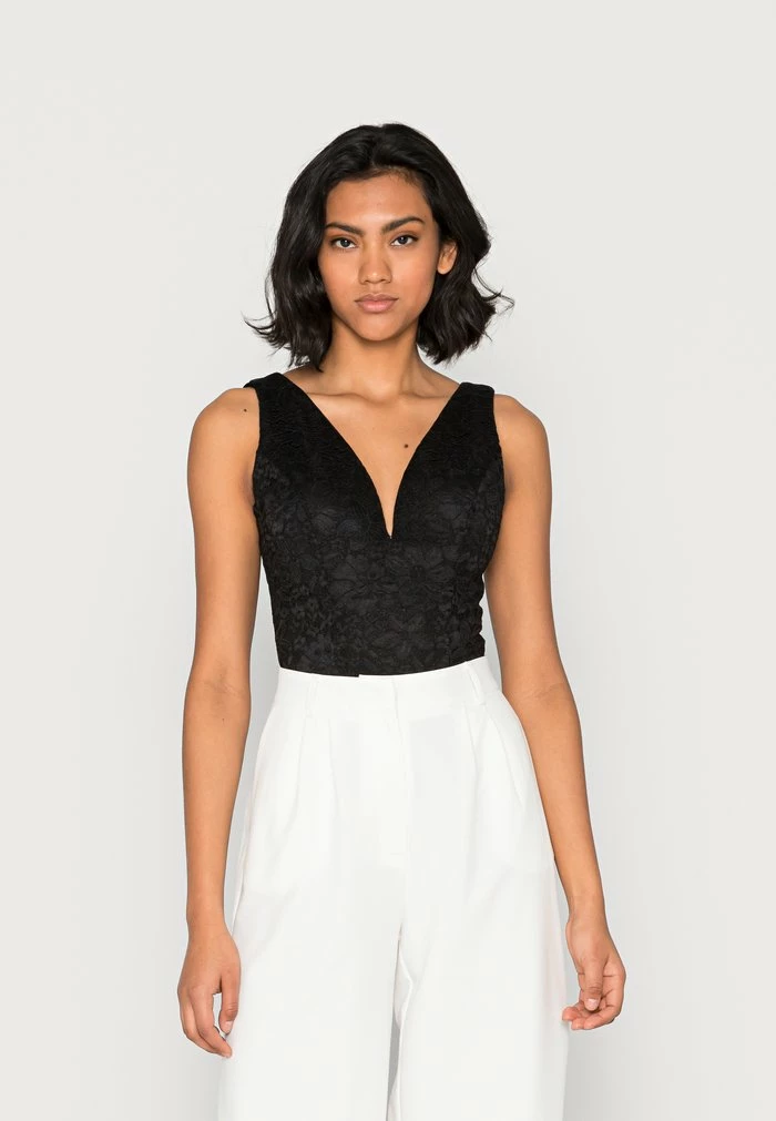 - Neckline: Low-cut v-neck
